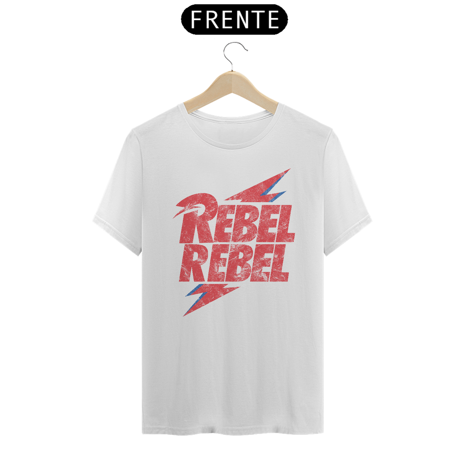 Camiseta inspirada na música Rebel Rebel, um dos hinos mais icônicos da fase glam rock de David Bowie. A estampa utiliza tipografia forte e estética crua para traduzir visualmente a energia da canção: rebeldia, liberdade e quebra de padrões.