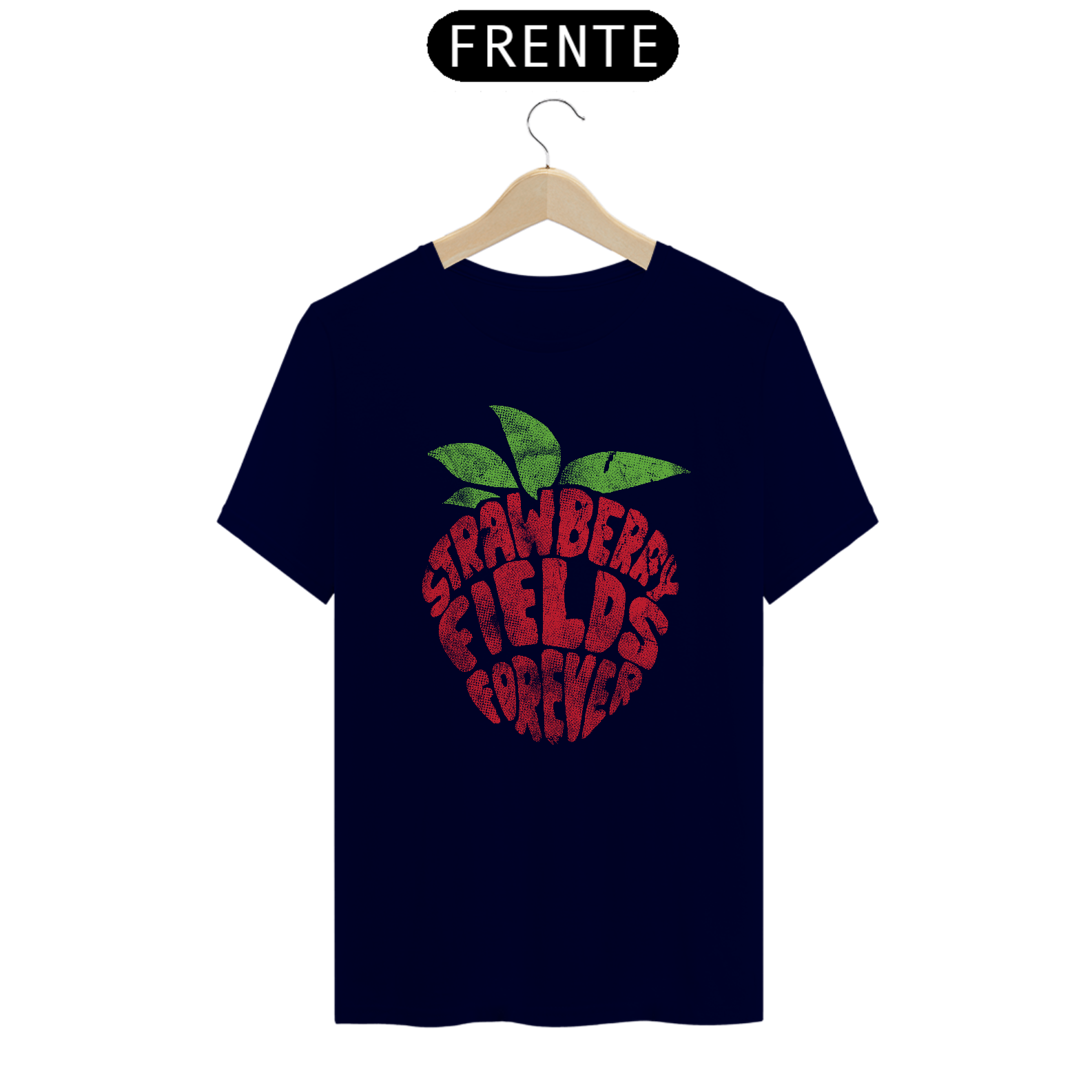 Camiseta inspirada na música Strawberry Fields Forever, uma das composições mais icônicas da história do rock. A estampa traz uma arte gráfica autoral baseada no título da canção, referência direta ao universo criativo e psicodélico dos Beatles.